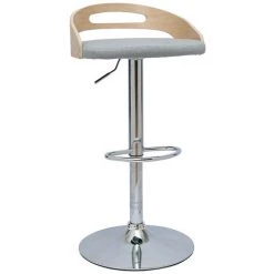 MILIBOO Tabouret De Bar Réglable Design Bois Clair Et Tissu Gris Clair MANO – Gris Clair