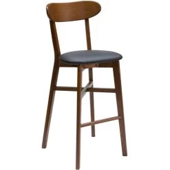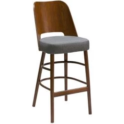 MILIBOO Tabouret De Bar Vintage Noyer Et Tissu Gris Foncé H65 Cm EDITO – Noyer
