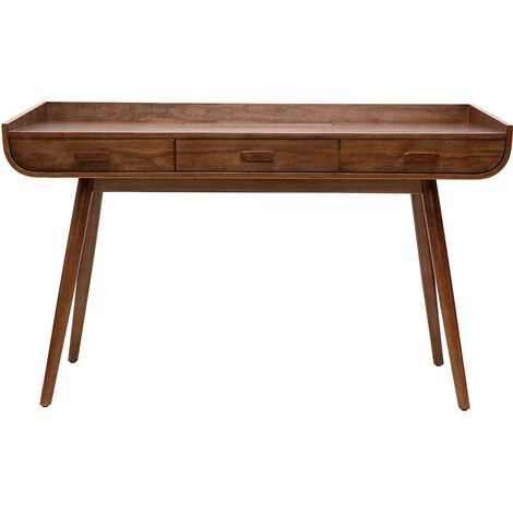 Avec HALLEN, le bureau minimaliste, esthétique mais aussi fonctionnel de nos rêves prend vie. Il associe un style rétro et de nombreux rangements dans un format compact, parfait pour les petits espaces. On aime le mélange réussi entre lignes droites et jolies courbes qui lui donne ce style unique. Avec son piètement en noyer massif et son plateau en panneaux de fibres de bois placage noyer laissant apparaître les détails du bois, ce petit bureau est une pièce authentique qui ne manque pas de charme !