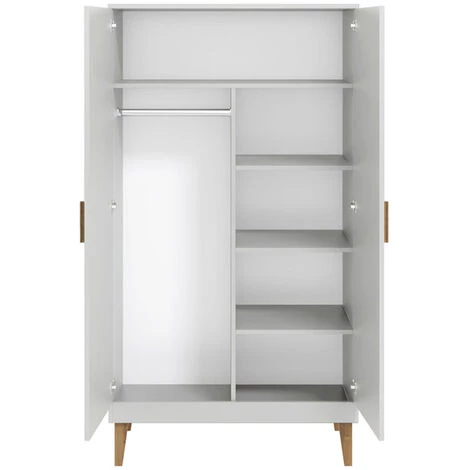 L’armoire ELIAS l’a bel est bien compris : les lignes simples et les teintes épurées nous font totalement chavirer ! Toute de blanc vêtue, elle arbore des petites touches de bois avec des pieds fuselés en chêne massif et des poignées bois clair qui réhaussent joliment le tout. Une beauté simple, qui va droit à l’essentiel !