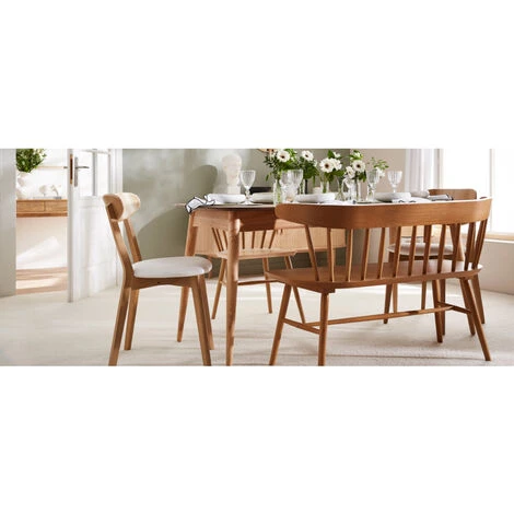Avec ses lignes fluides, son dossier courbé et sa large assise en contreplaqué de chêne (L106 x P41 x H44 cm), le banc DARIA garantit un confort durable. Sur le bois est apposé un vernis transparent qui va le nourrir et le protéger.