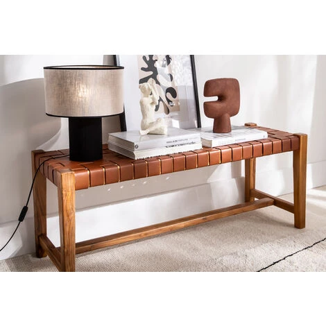 Matières : teck massif et cuir de vache