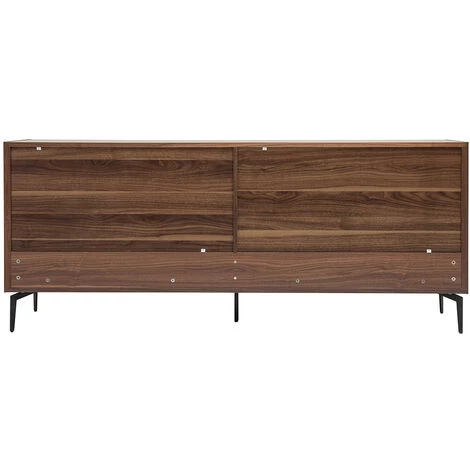 Ce grand buffet (L180 x P40 x H75 cm) est parfait pour tout ranger dans la maison. Il est doté de deux grands tiroirs (L81.5 x P32.5 x H7 cm) sur sa partie supérieure et de quatre étagères fermées par des portes sur sa partie inférieure (dimensions intérieures d’une étagère : L86.5 x P34 x H17 cm).