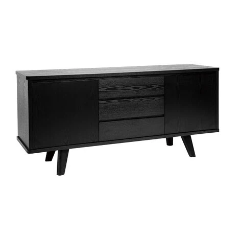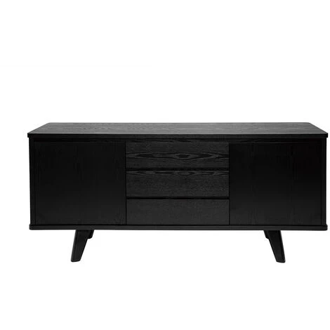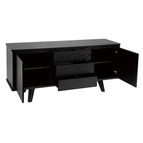 Travaillé dans un style résolument rétro chic, le buffet FIFTIES ne manque pas de charme. Il emprunte aux meubles scandinaves des années 50, leurs pieds compas et leur ligne épurée aux angles arrondis. Ce look vintage est associé à une jolie structure finition noir mat et un piètement en frêne massif pour un résultat élégant et indémodable.