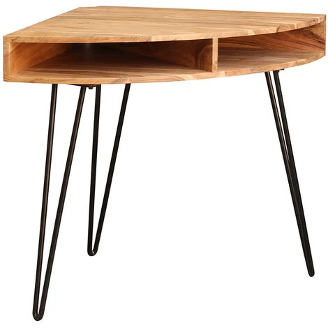 Pratique avec style, le bureau d’angle en acacia massif et métal noir GOSBY a tout pour plaire !