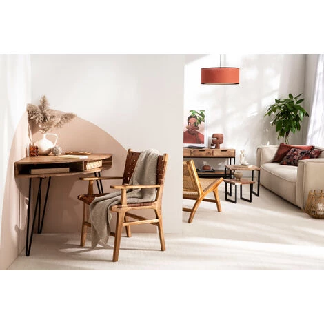 Les tons chaleureux emblématiques de l’acacia permettent à ce bureau d’instaurer une touche très cosy dans la pièce. Grâce à cette essence de bois au charme intemporel, ce bureau d’angle s’accorde simplement avec le reste du mobilier.