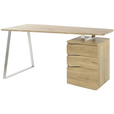 Avec son design unique, sa finition chêne et ses éléments métalliques, le bureau JANIS apportera charme et modernité à votre intérieur. Son plateau évasé et ses deux pieds dépareillés en font un objet singulier ultra contemporain à marier aussi bien à un intérieur minimaliste qu’à une pièce d’inspiration industrielle.