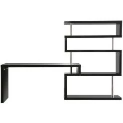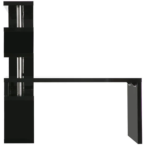 Pratique, élégant et modulable, le bureau design T-MAX cumule les avantages ! En panneaux de fibres de bois laqué noir, il est doté d’une étagère rotative autour de sa structure principale : pas moins de 4 plateaux permettent d’optimiser votre rangement.