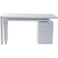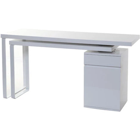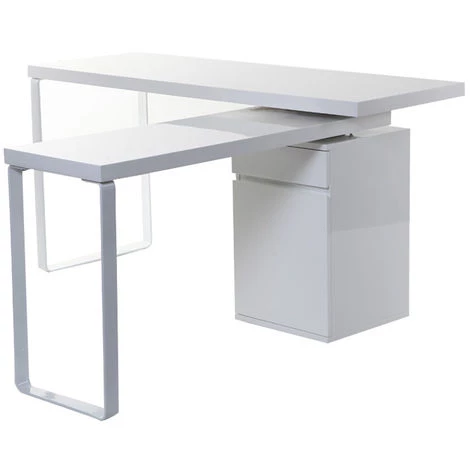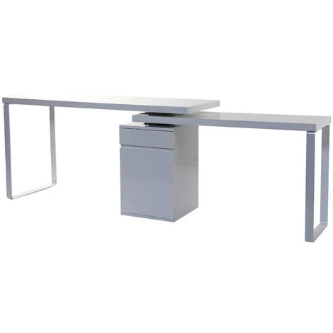 Son piètement en métal, ses plateaux et son caisson en panneaux de fibres de bois possèdent une finition en peinture blanc brillant. Ce look très pur et sobre pourra ainsi s’intégrer dans une pièce de bureau neutre ou bien coloré.