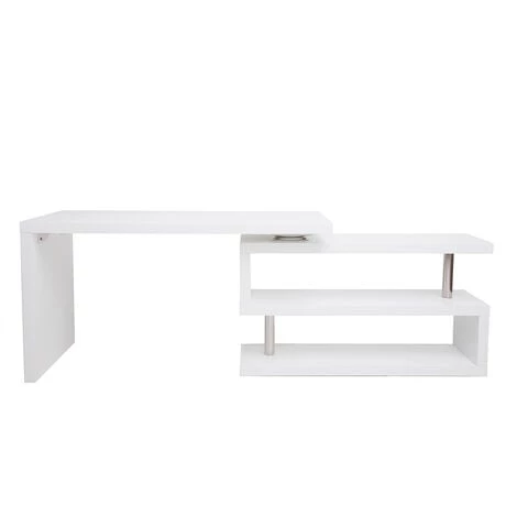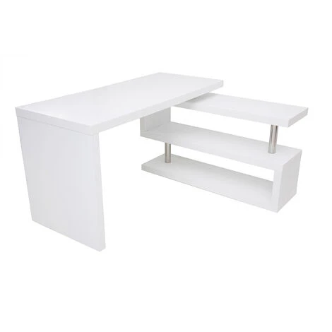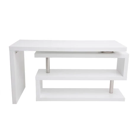 Une praticité sans égale avec un plateau rotatif équipé de roulettes autour de la structure principale et des étagères permettant de ranger papiers et fournitures diverses. Des lignes originales, un revêtement blanc mat de grande qualité ainsi qu’un plateau pivotant très pratique résument parfaitement ce meuble.