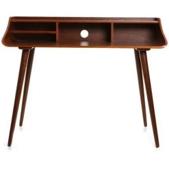 Ce bureau design en bois multiplis et placage en noyer possède différents espaces de rangement pour vos dossiers. De part sa taille et son style, il s’intégrera facilement dans toutes les pièces de votre maison, que ce soit dans votre salon, votre chambre ou votre bureau.