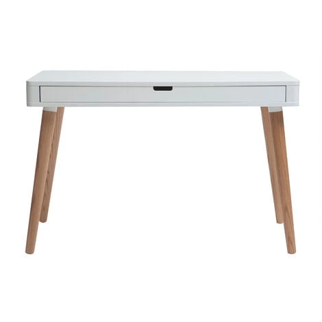 Ce bureau scandinave est équipé d’un grand tiroir pour organiser au mieux le coin travail. Ses dimensions en font un petit meuble idéal pour aménager un coin travail dans un espace partagé comme le séjour ou la chambre.