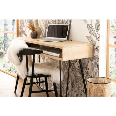 Avec son design versatile et essentiel, ce bureau « gain de place » pourra aussi faire office de console dans une entrée. Grâce à sa faible profondeur (45 cm) et sa grande légèreté visuelle, il est l’allié des petits espaces. Il s’intégrera à merveille dans une entrée à la décoration vintage ou une pièce de vie au style bohème chic. Pour un maximum de confort et de style, accompagnez-le d’un joli fauteuil de bureau Miliboo.