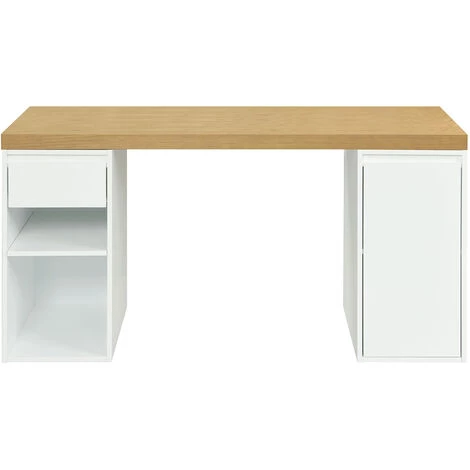 Oubliez le surperflu ! Le bureau RACKEL c’est avant tout une forme épurée adaptée aux bureaux qui vont à l’essentiel. La pureté de ce design est mise en valeur par un jeu de matière élégant. On aime l’aspect chaleureux du plateau et son association réussie avec des rangements blancs éclatants. Le placage hêtre apporte une touche de contraste naturelle à un ensemble immaculé. Ce style pur et plein de charme évoque le minimalisme des meubles scandinaves. On adore !