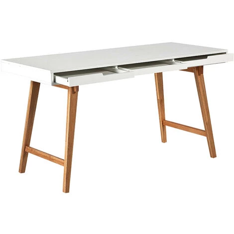 Avec son design scandinave et ses nombreux rangements, le bureau blanc et bois ESKA est le meuble idéal pour un espace de travail pratique et un intérieur tendance !
