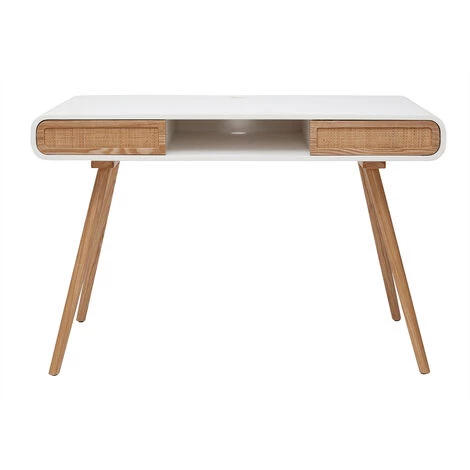 Joli mix entre un plateau blanc en panneaux de fibres de bois, un piètement en frêne massif et des portes en rotin, le bureau OLYMPE est un meuble qui ne manque pas de charme. En revisitant l’utilisation du cannage dans une version actuelle, il cultive son propre style.