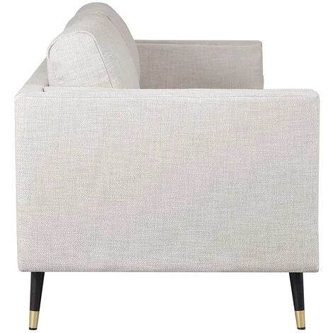 Ce canapé aux lignes contemporaines est revêtu d’un élégant tissu chiné beige terriblement dans l’air du temps. Moderne et un brin vintage, il s’inspire des fifties en arborant un piètement fuselé en hêtre noir et métal doré : ce détail de style lui donne une allure folle ! Aussi raffiné que tendance, STING captera tous les regards.