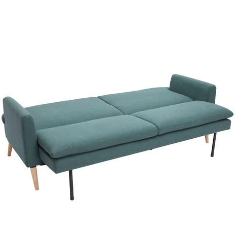 Tantôt canapé 3 places, tantôt couchage supplémentaire pour 1 personne, ce convertible s’adapte à vos besoins sans faire fi du design. Tout en simplicité, la silhouette aux lignes épurées, se pare d’un tissu au toucher très agréable coloris vert. Raffinée et apaisante, cette couleur associée au piètement à l’inspiration nordique en bois clair, apportera douceur et élégance à votre intérieur. À l’aise dans de nombreux univers déco, ce canapé donnera particulièrement le ton dans un salon ou une chambre d’amis à l’inspiration scandinave.