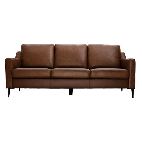 Le piétement en métal du modèle OXMO lui apporte un maintien et une solidité optimale. La forme des accoudoirs ainsi que celles des dossiers et des assises apportent un aspect chaleureux et cosy. Quant à son revêtement en cuir, il est gage de qualité et offre un rendu naturellement élégant.