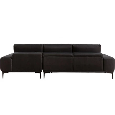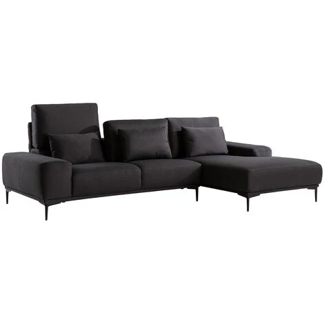 Le salon s’équipe enfin d’un siège design au format XXL. Un magnifique piètement fuselé, une assise épaisse et massive, une ligne minimaliste… le canapé d’angle KONRAD réunit tout ce qui fait le succès des canapés contemporains. Avec son joli revêtement en polyester gris foncé et ses quatre pieds en métal noir travaillés tout en finesse, il fera du séjour une pièce moderne où le design est roi.