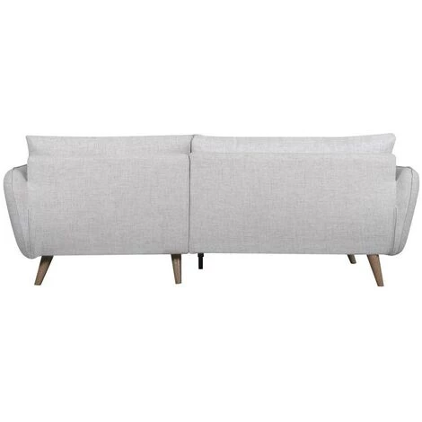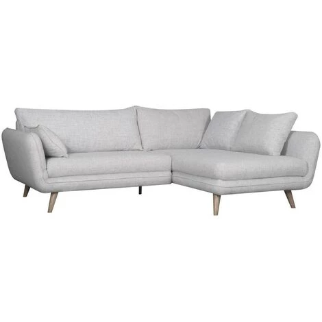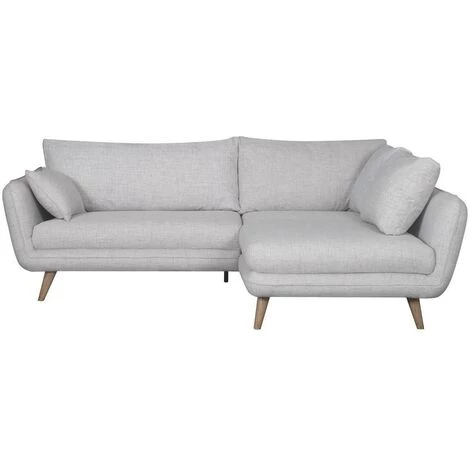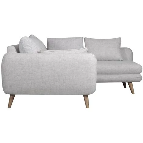 Côté style, CREEP affiche un look scandinave résolument tendance. On aime son joli tissu gris clair chiné (100% polyester) ainsi que son piètement compas en hêtre massif. Pour un salon chaleureux et convivial, on associe ce canapé d’angle à des tables basses en bois.