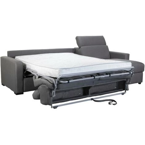 Ce canapé design et polyvalent possède également le confort d’un vrai lit deux places ! Son assise qui se déplie en un clin d’oeil renferme un sommier équipé d’un matelas 140 x 190 cm (densité 28 kg/m3). Ce canapé ultra fonctionnel a été pensé dans les moindres détails. La partie méridienne est équipée d’un coffre de rangement. Il suffit de relever la méridienne pour ranger le linge de lit encombrant et pourtant nécessaire.