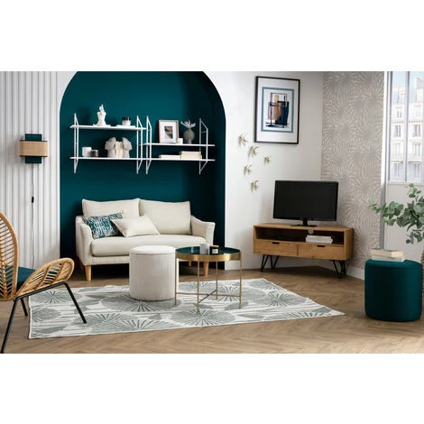 Ce canapé rappelle l’univers classique chic par ses accoudoirs légèrement évasés, aux courbes attrayantes. Son revêtement en tissu effet velours et ses pieds en hévéa massif sont inspirés par la tendance scandinave, épurée et pleine de douceur. Du mariage de ces deux univers résulte un canapé confortable, qui donnera du cachet à votre salon, sans jamais passer de mode !