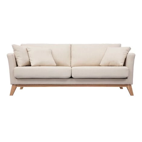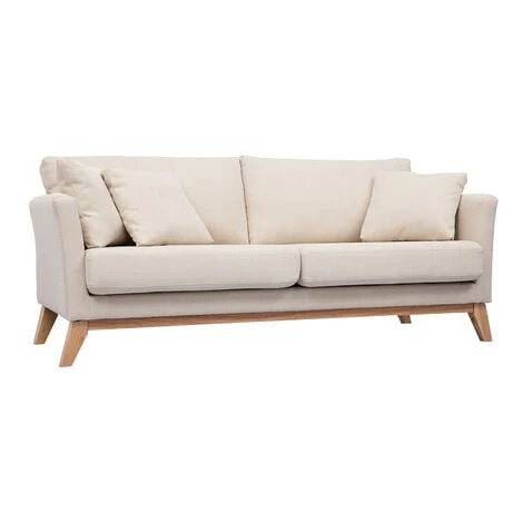Le canapé scandinave 3 places OSLO : un look d’inspiration nordique et un revêtement en tissu beige pour un salon déco et indémodable !