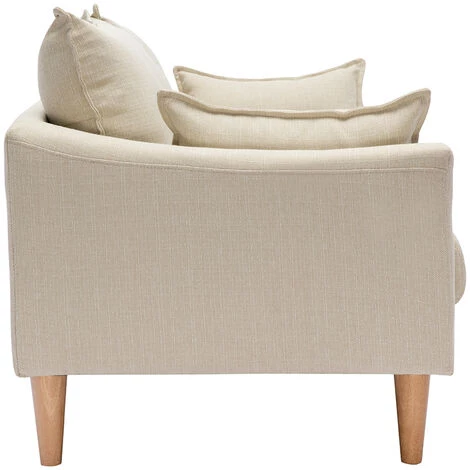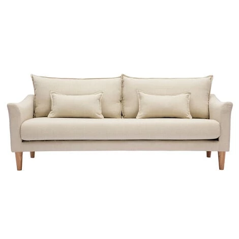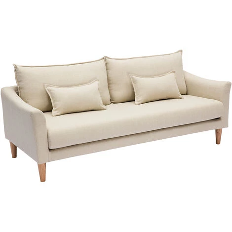 Ce canapé beige a tout pour devenir la pièce maîtresse du salon. Ses dimensions (L180.5 x P78 x H77 cm) permettent d’asseoir confortablement trois personnes et ses deux coussins d’appoint d’ajuster le confort en fonction de chacun. L’assise moelleuse du canapé KATE ravira les adeptes d’instants détente dans le salon.