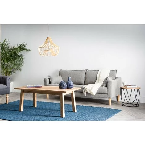 Pour un espace chaleureux et convivial, on accompagne ce canapé 3 places d’une table basse en bois.