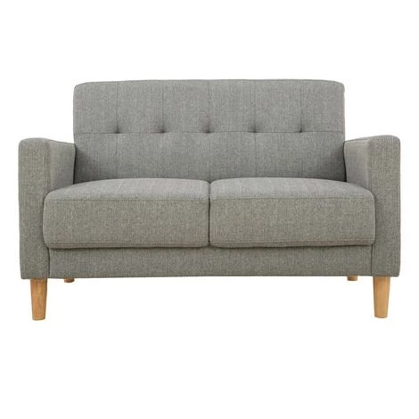 Avec son assise pour deux personnes en tissu gris, il apporte une touche contemporaine et des teintes faciles à assortir à votre intérieur. Ce canapé joue sur un subtil jeu de formes et un dossier capitonné qui convient parfaitement à un salon classique ou plus moderne.