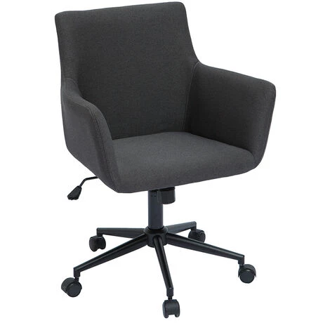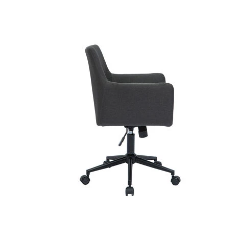 Cette chaise de bureau, c’est l’alliance sobre et intemporelle d’un revêtement en tissu gris anthracite et d’un piètement en métal noir. Un fauteuil de bureau design qui s’intégrera à merveille dans un bureau à la déco contemporaine.