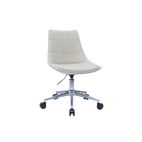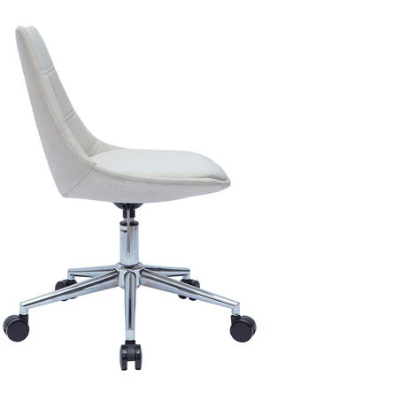 Tout a été travaillé pour faire de la chaise de bureau MATILDE une assise aussi soignée que décontractée. Son tissu polyester naturel, ses lignes fluides et son piètement en métal chromé lui donnent une allure folle !