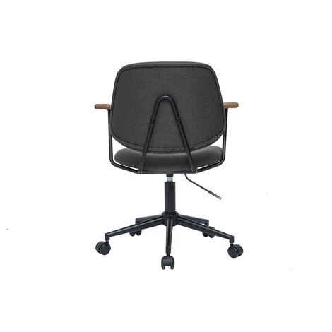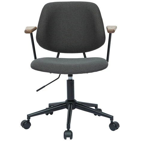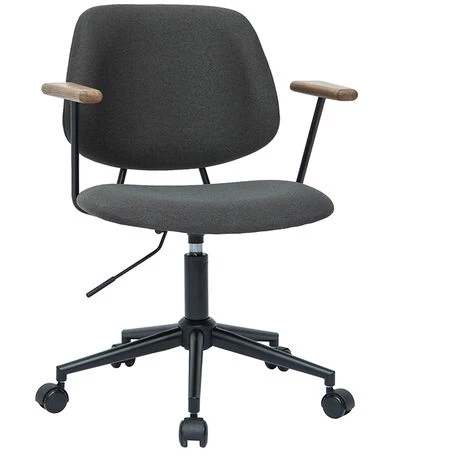 Au look d’apparence simple, BARNET n’a rien laissé au hasard. À la belle silhouette fluide, cette chaise de bureau au revêtement gris anthracite et au piétement métallique noir affiche de beaux accoudoirs en chêne massif. Un vrai détail de style qui fait toute la différence ! Cette belle touche naturelle vient rehausser le tout et donne à cette chaise de bureau une allure unique.