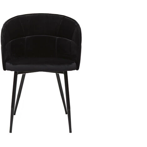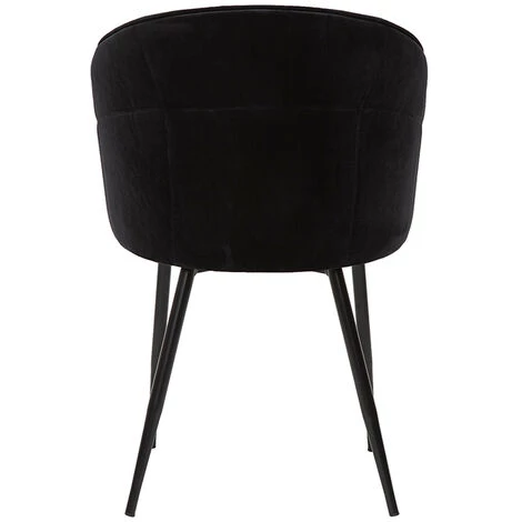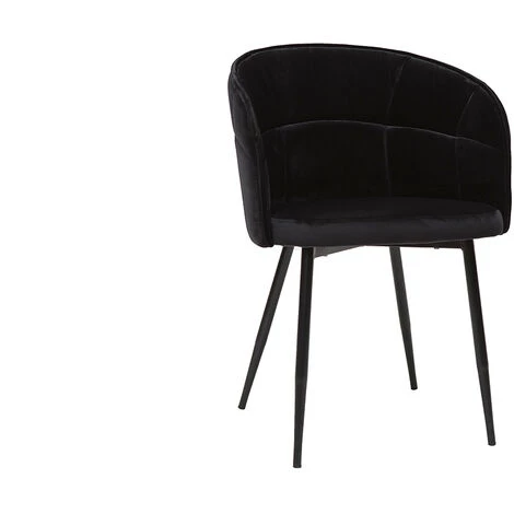 Miroitant et agréable au toucher, le tissu velours habille avec délicatesse le siège tout en rondeur. Cette matière chaleureuse se pare d’un intense et intemporel coloris noir. Le piètement fuselé en métal noir modernise l’ensemble pour un résultat monochrome des plus glamour !