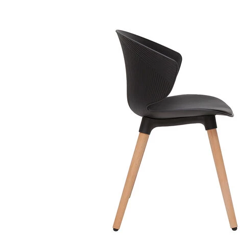 Forme originale, dossier orné d’un motif graphique, structure en polypropylène et détail noir du soubassement se partagent la vedette d’un look ultra design qui apportera sans conteste une note de modernité à votre cuisine ou salle à manger. Coloris noir, revêtement d’assise en polyuréthane et piètement en bois clair forment un trio tout en douceur, parfait pour instaurer une ambiance chaleureuse dans votre pièce de vie. Dans une déco contemporaine, les silhouettes aériennes de la chaise WING au jeu de matières et couleurs si soigné, prendront place avec beaucoup d’élégance.