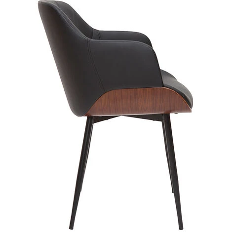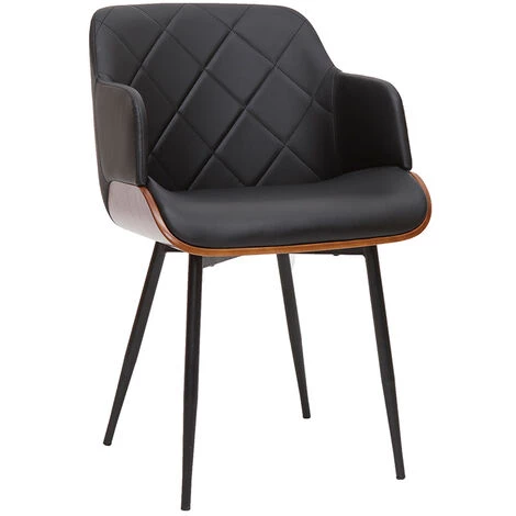 Tout vous séduira dans cette chaise tendance. L’association du polyuréthane noir matelassé, du bois foncé et du métal lui donne résolument un design dans l’air du temps. Elle marie brillament des pieds fuselés à un siège enveloppant qui vous apportera tout le confort nécessaire lors de vos repas prolongés .