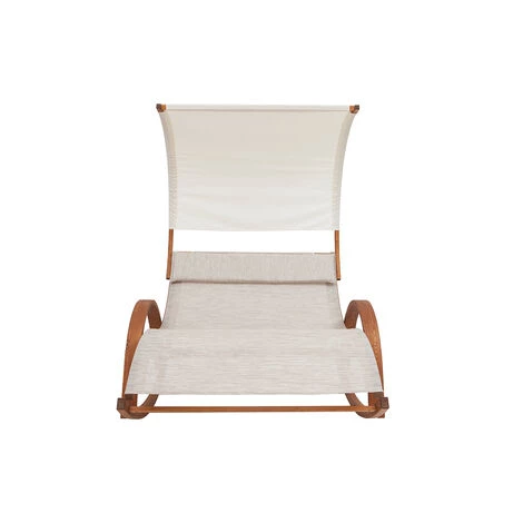 Son assise à la taille généreuse vous accueille à deux confortablement pour un moment farniente en extérieur. Cette chaise longue double reprend le piètement caractéristique du rocking chair, parfait pour se prélasser sans modération dans son jardin. Pour un maximum de confort, la chaise longue NANAWA dispose d’un abri, idéal pour s’accorder une pause relaxante à l’ombre.