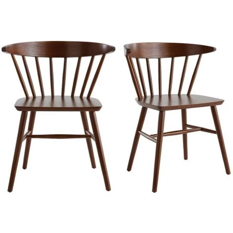 Matière : contreplaqué chêne teinté noyer, pieds et barreaux en chêne massif teinté noyer