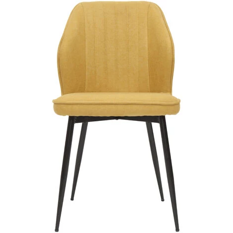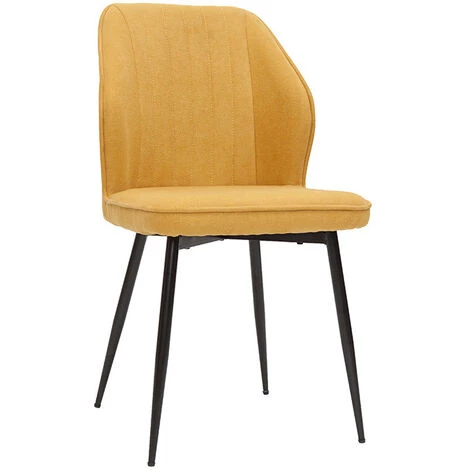 Ce duo de chaises, plus stylé que jamais, met en avant une silhouette raffinée valorisée par un effilé piètement noir à l’inspiration rétro. Le siège est habillé d’un tissu effet velours au toucher très agréable. Un textile resistant, aux accents cosy et à l’aspect delicat qui se pare d’un chaleureux coloris jaune moutarde, cette nuance à la fois vitaminée et réconfortante sera le symbole d’un intérieur tendance. Matière et couleur sont sublimés par des coutures contrastées sur le dossier, une fantaisie glamour qui donne de l’allure à un look tout en finesse. Bien que ce modèle s’envisage dans de nombreux intérieurs – autant modernes qu’intemporels – les chaises FANETTE trôneront en beauté dans une cuisine ou une salle à manger à la signature déco rétro chic.