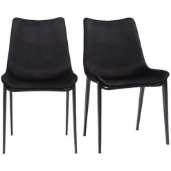 Avec leur assise large et incurvée (L50 x P39 cm), ces chaises rembourrées garantissent un maximum de confort. Prenez place au coeur de leur forme enveloppante et laissez-vous surprendre par la douceur de leur revêtement, un tissu velours (100 % polyester) au toucher soyeux et au coloris noir intense. Leur dossier haut et courbé sera aussi un allié de taille lors des interminables repas de famille. Le piètement en métal noir s’équilibre parfaitement avec l’assise. Il apporte une grande légèreté visuelle tout en offrant une bonne stabilité. Assise et piètement fusionnent dans une harmonie parfaite.