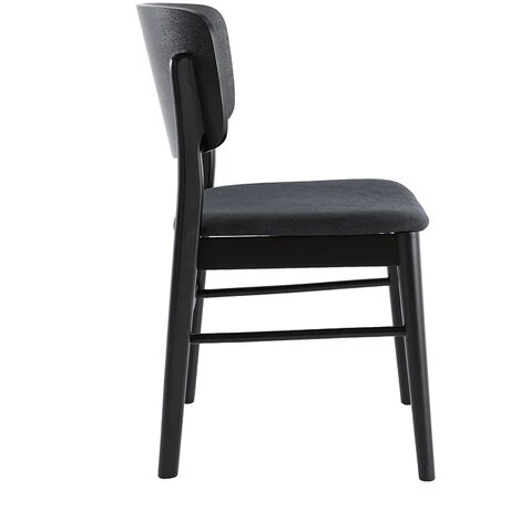 Très représentatives du design scandinave, les chaises SHELDON mettent le bois à l’honneur. Elles combinent une structure en lamibois placage frêne à un piètement en hévéa massif. La finition noire laisse naturellement transparaître les veinures du bois.