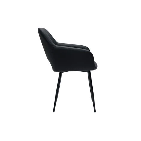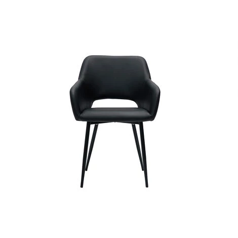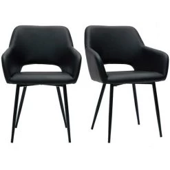 Juchées sur un piètement en métal noir sobre et délicat, ces assises rembourrées (densité de la mousse 25 kg/m3) offrent un accueil moelleux et un bon maintien. On aime particulièrement la souplesse et l’élégance intemporelle de leur revêtement, un tissu noir 100% polyuréthane.