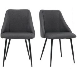 Ses assises rembourrées sont recouvertes d’un élégant tissu gris (100% polyester) à la fois souple et résistant. On aime tout particulièrement le joli jeu de surpiqûres qui souligne leur ligne graphique sobre et affirmée. Les pieds fuselés en métal noir apportent de la légèreté à la silhouette et s’accordent avec tous les styles de tables à manger.