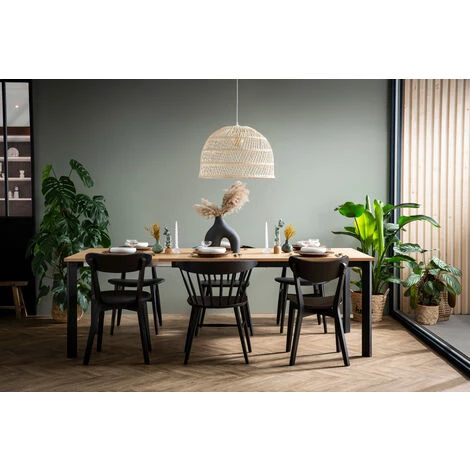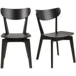 Le design de ces chaises de salle à manger évoque les assises scandinaves. Les lignes courbes, le placage chêne, le minimalisme de leur forme… autant d’éléments caractéristiques du mobilier nordique. Cet esprit scandi a été associé à une teinte noire élégante et moderne. Ce revêtement monochrome en fait des chaises faciles à intégrer dans son intérieur. Autour d’une table à manger en bois, elles créeront cette atmosphère chaleureuse et conviviale recherchée pour les espaces repas. On les associe avec des chaises dépareillées en métal, en bois clair ou colorées pour une salle à manger tendance.