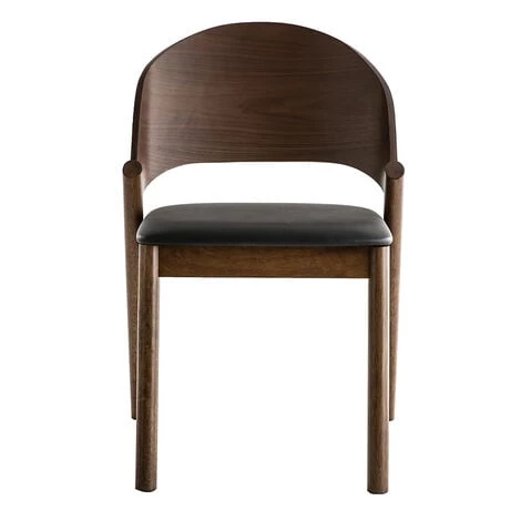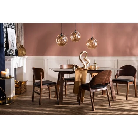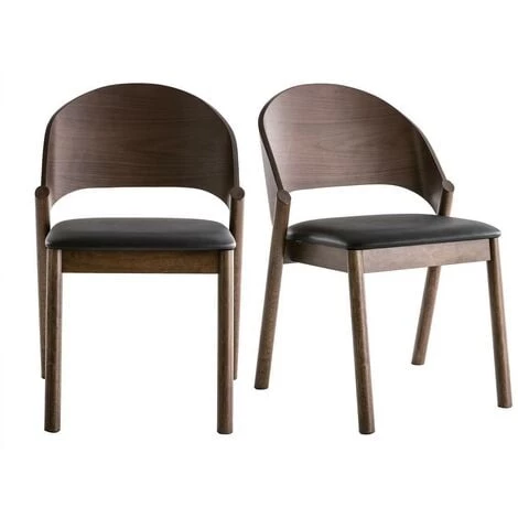 Les chaises AVALON se composent d’une structure en lamibois avec placage en noyer et d’un piètement en hévéa massif. La confortable assise est habillée d’un revêtement en polyuréthane noir qui contraste à merveille avec le noyer.