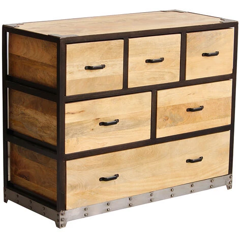 Extrêmement pratique, cette commode en bois massif bénéficie de 6 espaces de rangement