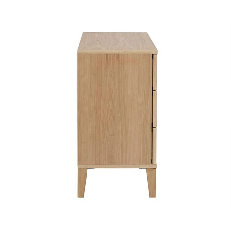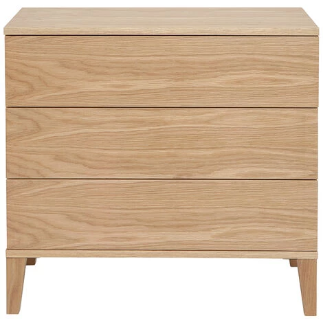 Au premier coup d’oeil, sa belle couleur bois clair donne le ton d’une pièce de mobilier scandinave ultra chaleureuse. Une structure en panneaux de fibres de bois placage chêne, des pieds en chêne massif : cette commode mise sur un total look bois pour réchauffer votre décoration d’intérieur avec style.