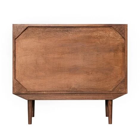 Cette commode est conçue en bois de mindi, une essence robuste qui se caractérise par des veines linéaires contrastées et de jolies nuances dorées. Sa finition naturelle (à base d’eau) protège le bois tout en faisant parfaitement ressortir son grain particulier. Confectionnée de manière artisanale, cette pièce intemporelle résiste bien à l’épreuve du temps.