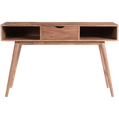 Parfaitement adaptée aux petits espaces, cette console en bois massif est équipée de deux niches ouvertes et d’un tiroir pour organiser les affaires du quotidien. Ses dimensions en font un meuble peu encombrant qui se glisse dans toutes les pièces de la maison. Une lampe à poser et un miroir seront parfaits pour sublimer ce petit meuble.